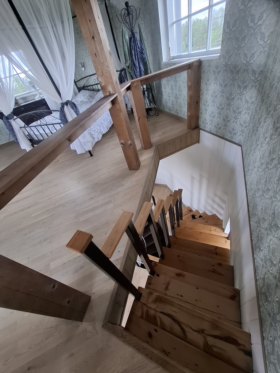 Der Wasserturm wurde 1904 erbaut. Bei den Umbauarbeiten nahm man das Dach herunter und baute den Wasserbehälter aus. Die Wände wurden erhöht um zwei Etagen einzurichten. Im Turm gibt es nun einen Schlafraum mit zwei Schlafplätzen und Badewanne sowie eine Küche sowie Toilette.